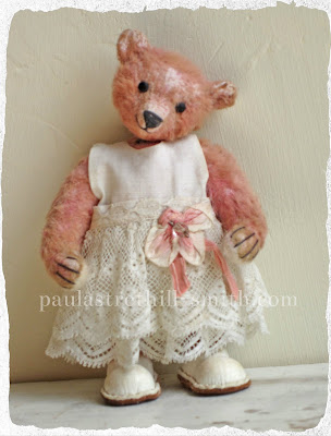 Jasmine is 7" high and created from antique white mohair and hand dyed soft pink mohair.