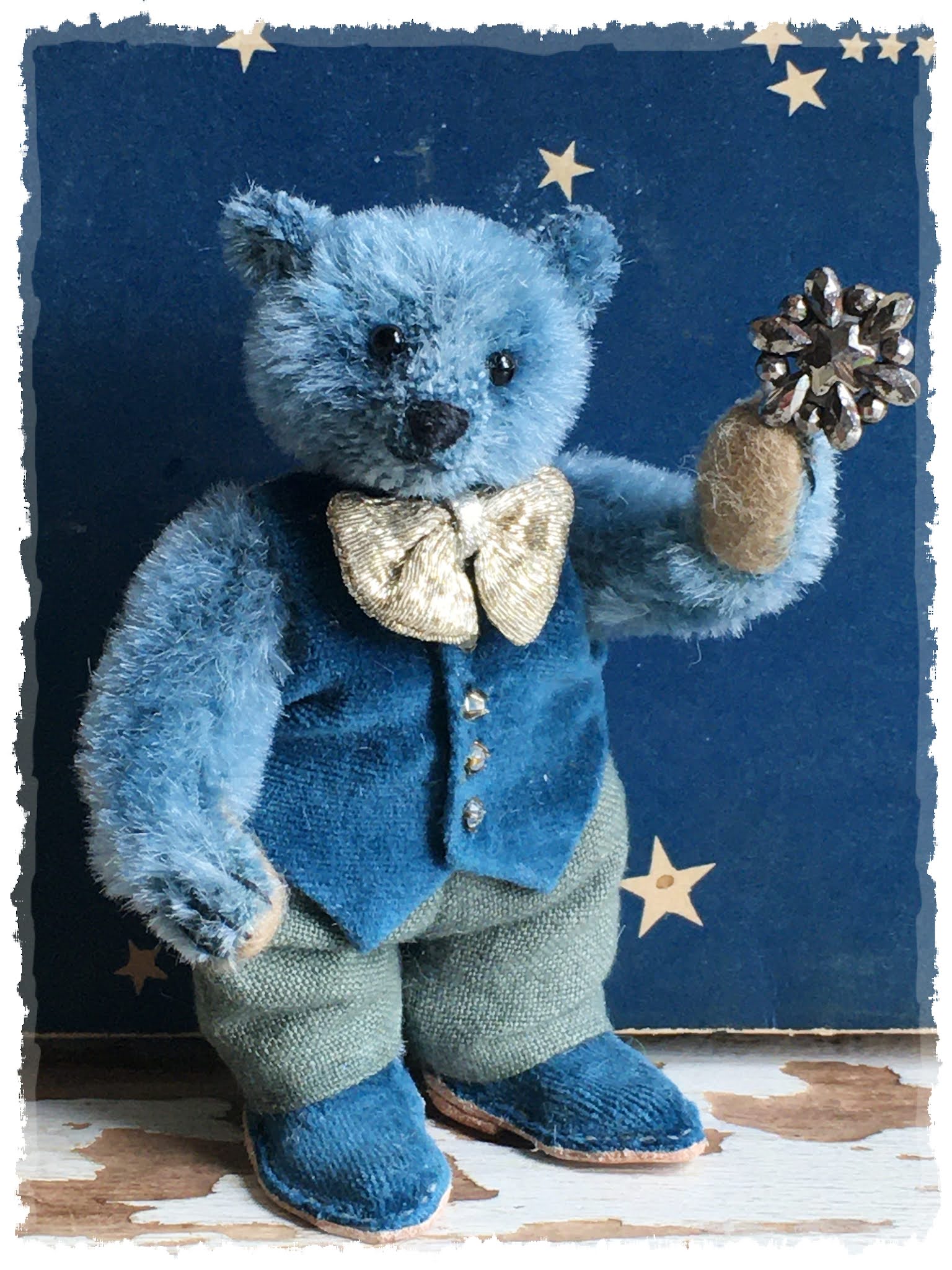 Stands 3.25"or 8cm created from hand dyed mohair in sky blue.