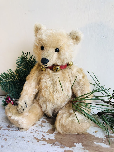 Old Jingle is 8.5" high and is created from antique mohair hand dyed in a pale honey blonde.