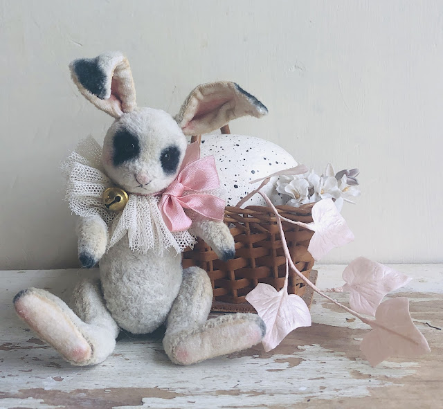 Spring chick comes with a silk velvet egg which I have created from a vintage easter egg.
